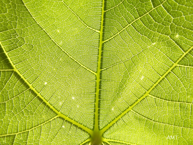 nervios fractales de esta hoja de higuera se resaltan gracias a un contraluz,